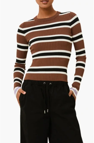 A ribbed stripe long-sleeve top is a classic piece that fits seamlessly into any wardrobe. Its comfortable fit and timeless design make it suitable for everyday wear, whether styled casually or layered under jackets.